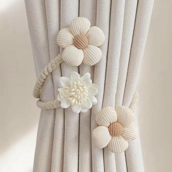 These are easy-to-use magnetic curtain clips or tiebacks that snap together without needing any drilling and are perfect for rental homes. They can easily hold all kinds of curtain fabrics.