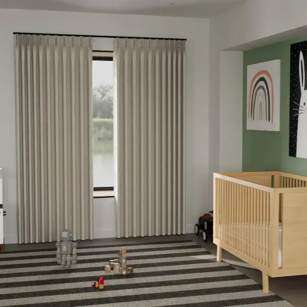 Avena blockout fabric is made from a single piece of material, so there are no seams or visible stitching. It has a textured weave on one side and a coated back, which work together to effectively block out light, help insulate your room, and ensure privacy. The fabric includes a sturdy 80mm hem for easy hanging.