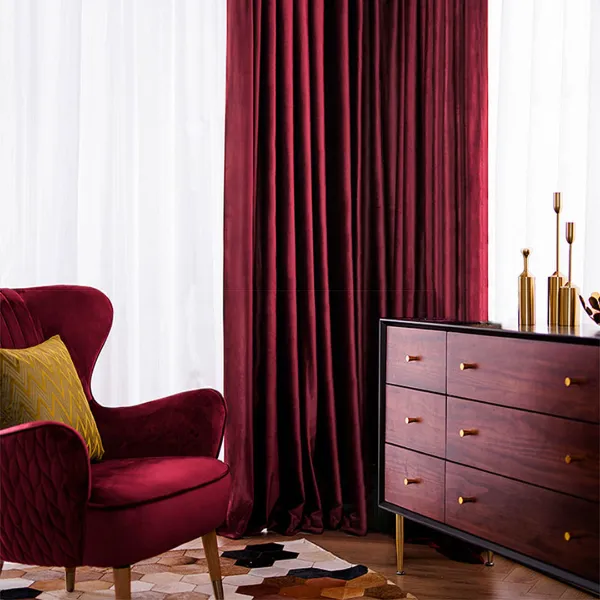 The burgundy wine red Velvet Curtains bring rich colour and refined elegance to modern interiors. Crafted from luxuriously soft matte velvet, the fabric features a smooth, non-reflective finish that enhances contemporary and minimalist spaces. Lightweight yet durable, it drapes beautifully while offering excellent light control and privacy. The deep wine-red tone adds warmth and sophistication, making it an ideal choice for bedrooms, living rooms, and statement windows.