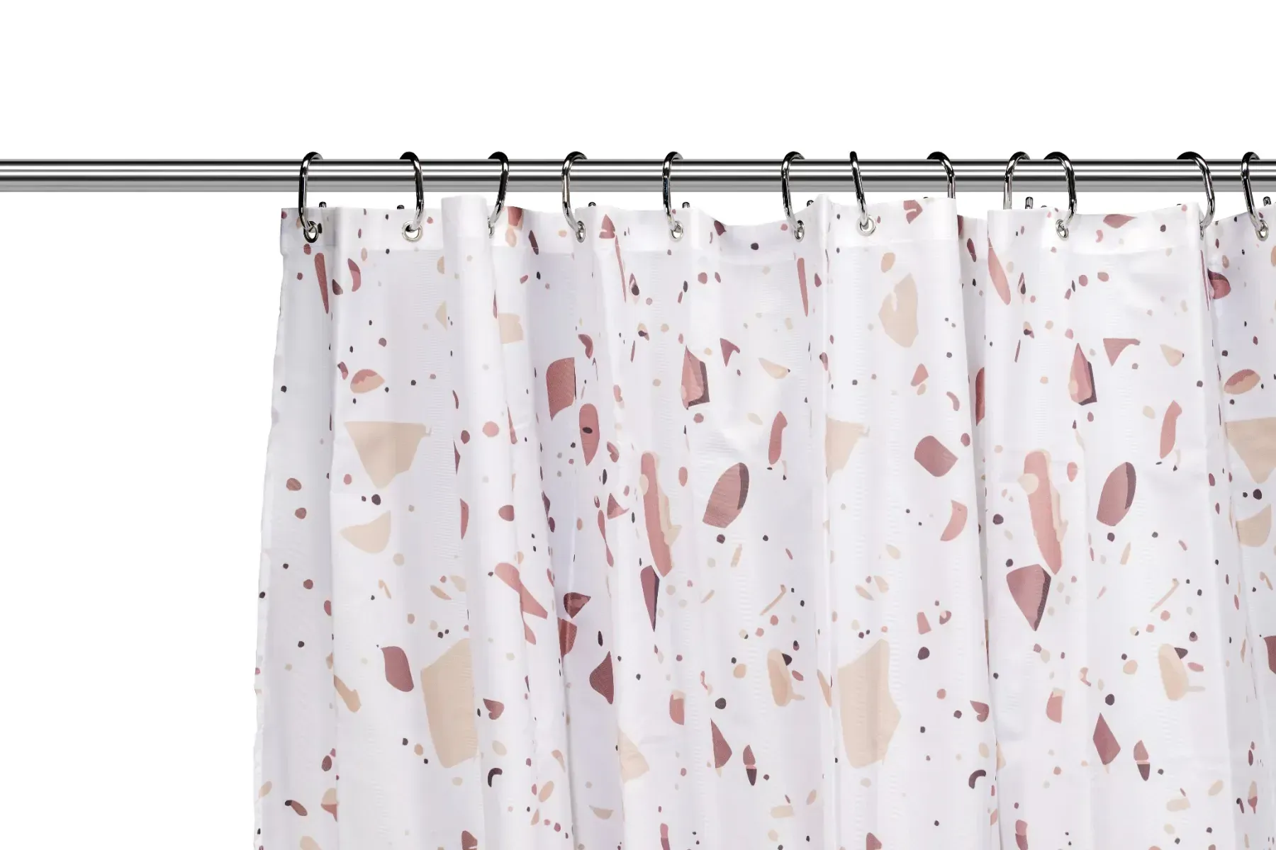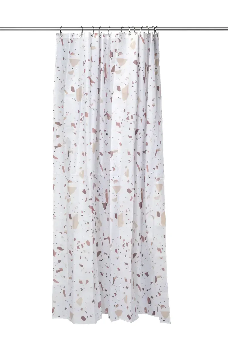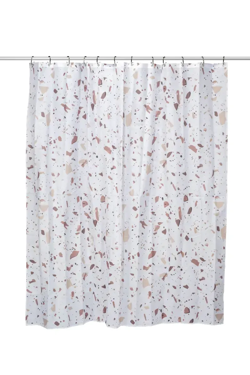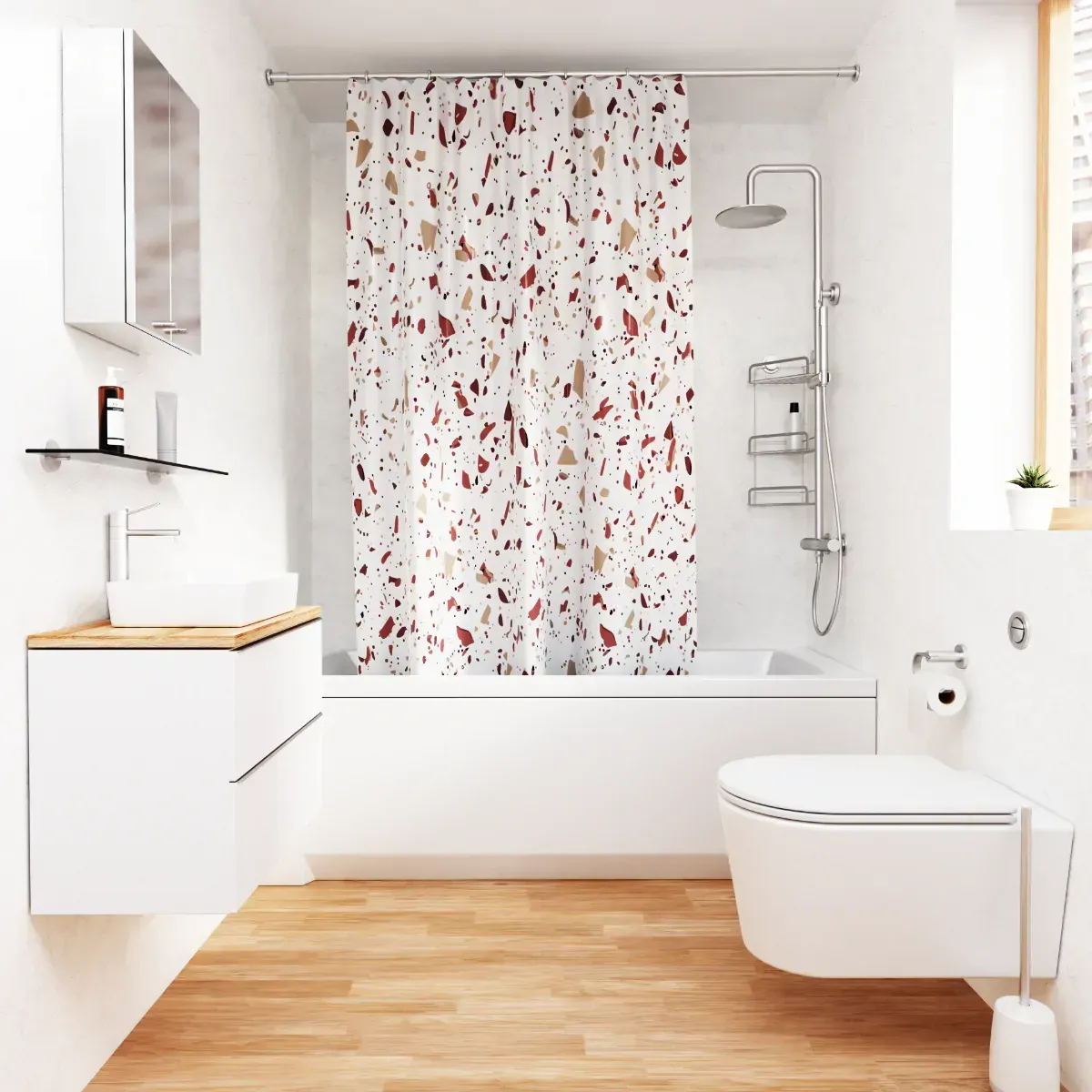 Pink terrazzo design shower curtain bring playful charm to your bathroom. The soft pink tones and terrazzo pattern add warmth and style to any space. Made from water-repellent fabric with corrosion-resistant eyelets and a weighted hem for a neat, practical finish.