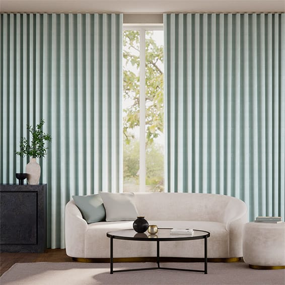 Soft and elegant faux silk curtains in a calming duck egg shade, designed with a modern S-Fold finish. Fully made to measure with lining and motorisation options, they bring smooth draping and refined style to any space.