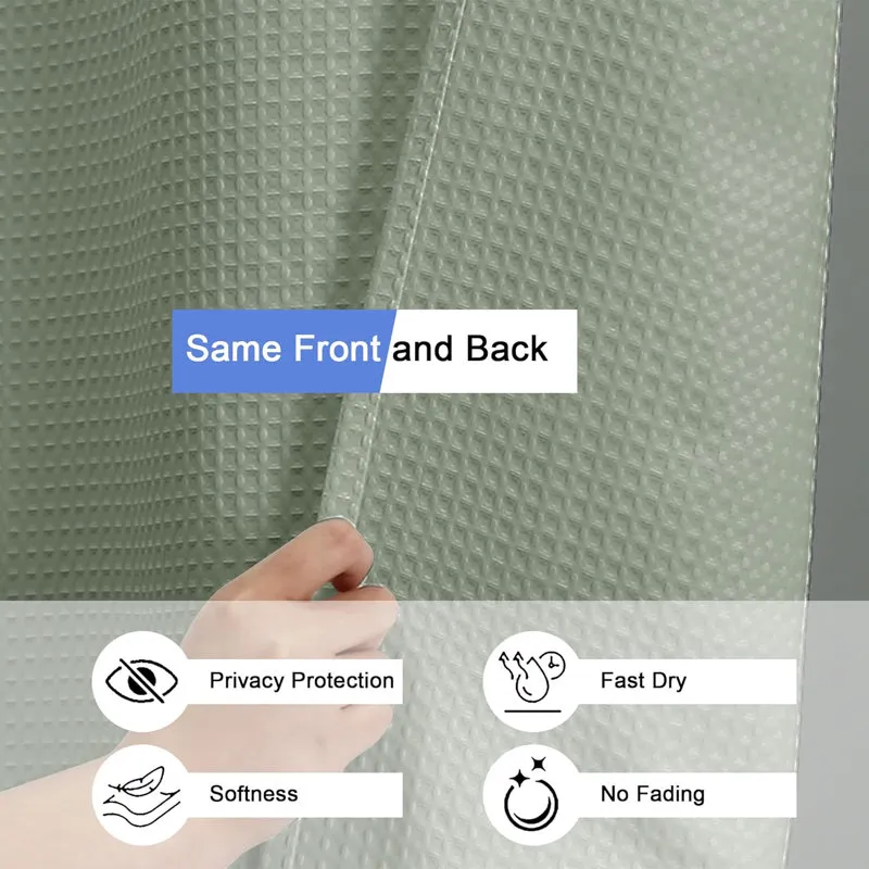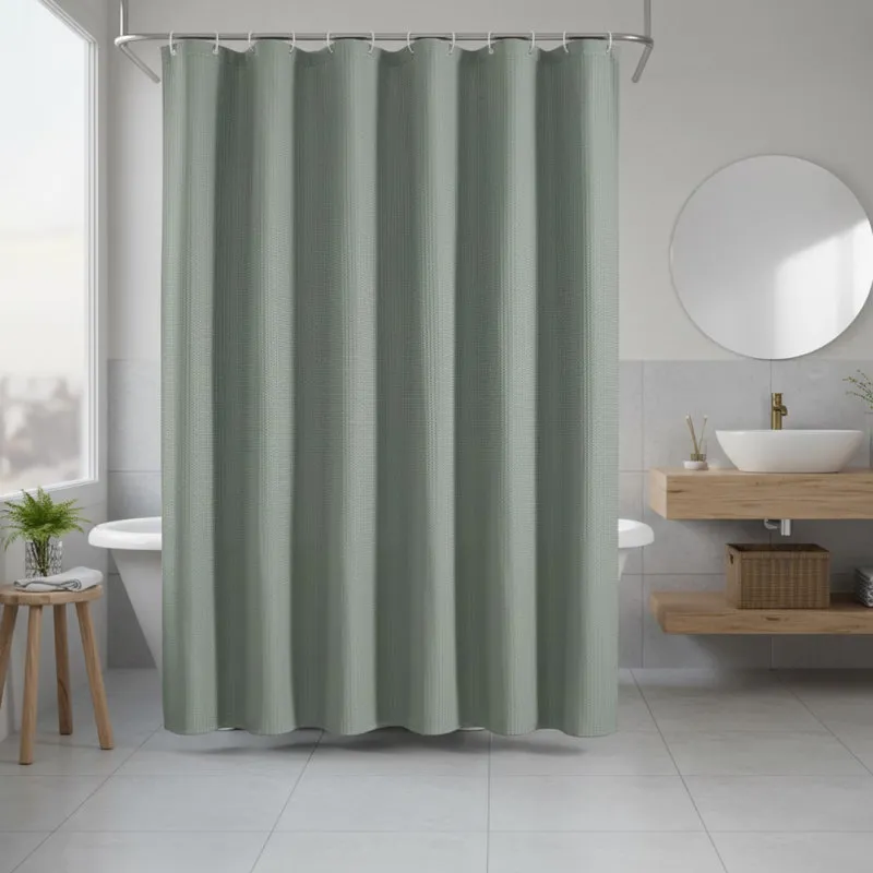 Elevate your bathroom with the Sage Green Shower Curtain, crafted from high-density polyester for durability and a soft, cotton-like feel. Its elegant honeycomb waffle pattern enhances style while providing excellent privacy. Ready-to-hang with included hooks, this curtain is machine washable for effortless care.