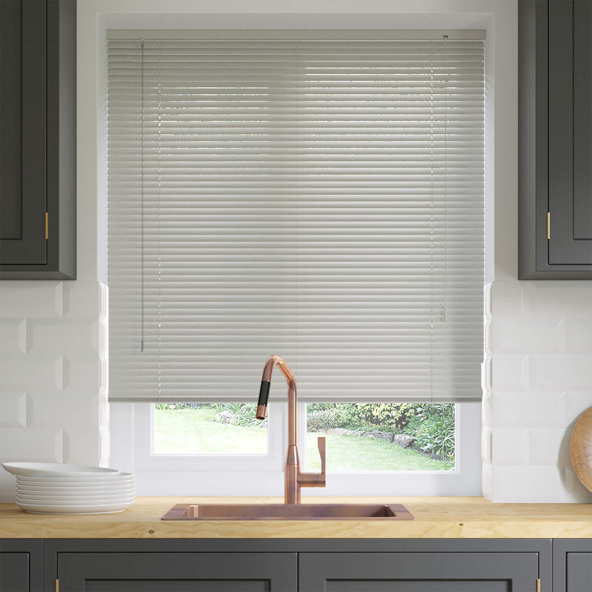 Enhance any interior with expertly crafted Venetian blinds in a modern mist grey finish. Fully tailored to your space, these blinds provide smooth light control while maintaining long-lasting durability. Perfect for any room, they combine practicality with contemporary elegance.